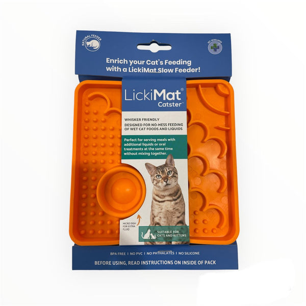 Cat Feeder: LickiMat provides a more natural approach for a cat to eat and eliminates whisker stress caused by whiskers touching the side of a bowl.  Almost every cat that is given the choice between a LickiMat and a feeding bowl side-by-side will choose the LickiMat.