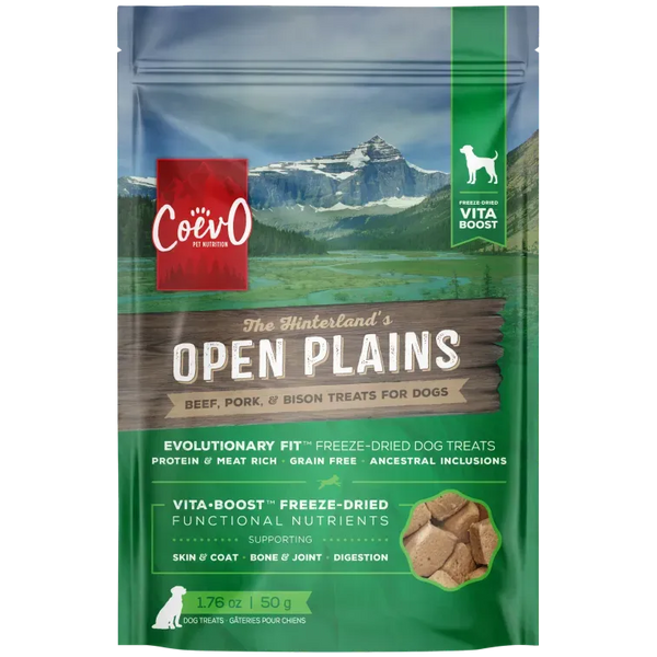The Open Plains Vita•Boost™ treats mirror the animal proteins that hail from North America’s Great Plains. Freeze-dried raw beef, pork, bison, and organs are enriched with Vita•Boost™ to provide a boost of nourishment that supports quality of life. Can be used as a treat or topper.