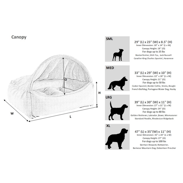 This new design takes our top selling Scoop bed to new heights! The cozy Canopy design combined with overstuffed bolsters, provides the ultimate in comfort and security pets love. The removable tufted cushion can be used as a crate or travel mat. The circular tufting creates an elegant upholstered look while ensuring fibre does not clump or shift when washing. Zippered covers for machine wash and dry.