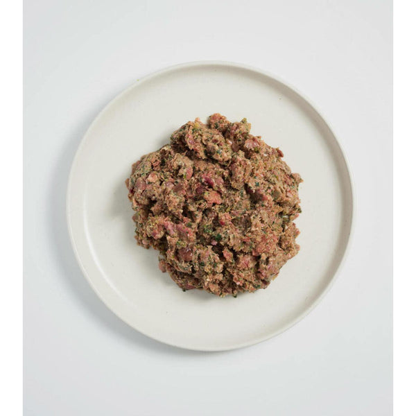 Lamb Muscle Meat, Chicken Frames, Lamb Heart, Lamb Liver, Lamb Kidney, Broccoli, Spinach, Chia Seeds, Organic Kelp Powder, Vitamins & Minerals.